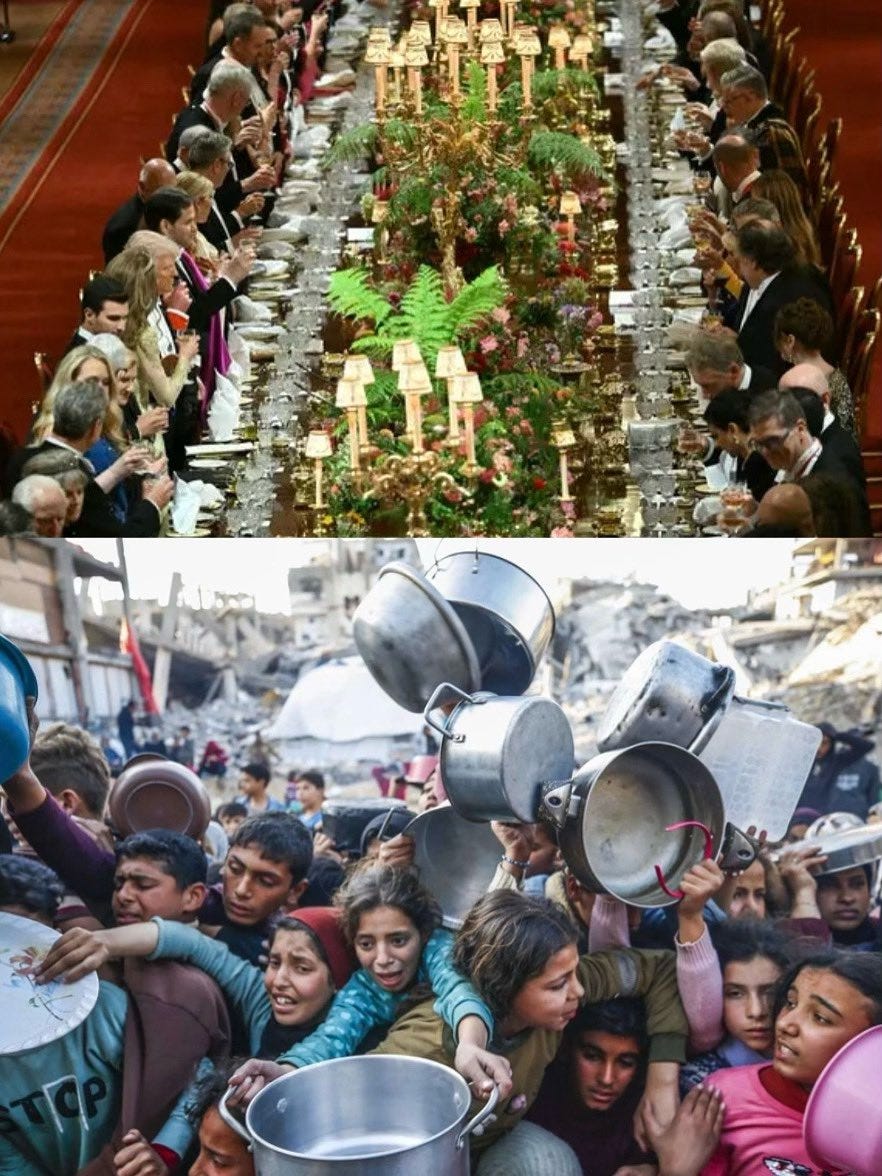 So, what is happening in Gaza, as well as in other parts of the world, where people are in the way of the resources needed to sustain our Western Industrial existence, is showing our own underbelly, our own complicity, however tacit, our own unwillingness to really change our "way of life". The Western World Leaders won't pull the plug on Netanyahu because that would mean the fall of Western civilization. A civilization built on the backs and struggles of the "other". A civilization that reaps more than it could ever need, while the other has less than nothing.